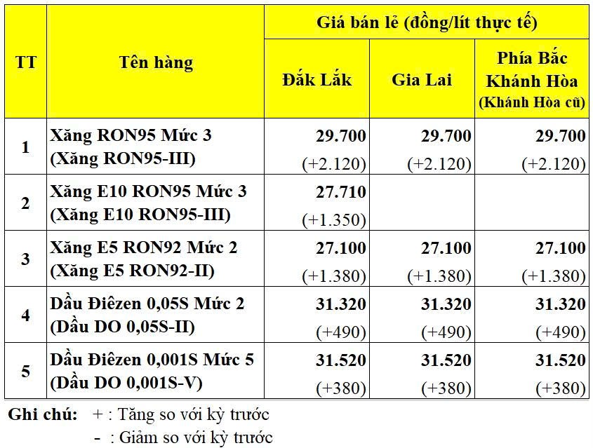 GIÁ BÁN LẺ CÁC MẶT HÀNG XĂNG DẦU ÁP DỤNG TỪ 15 GIỜ 00 PHÚT NGÀY 29/01/2026