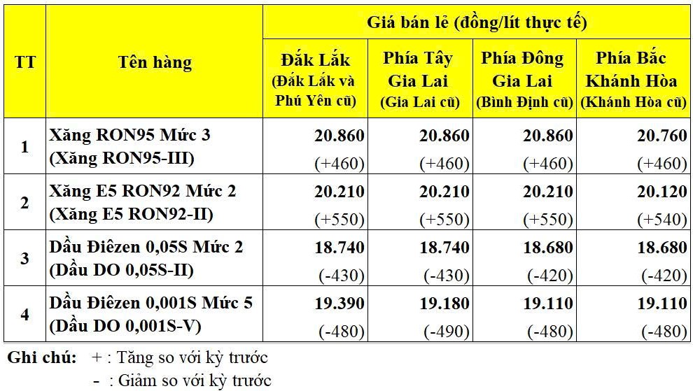 GIÁ BÁN LẺ CÁC MẶT HÀNG XĂNG DẦU ÁP DỤNG TỪ 15 GIỜ 00 PHÚT NGÀY 18/12/2025