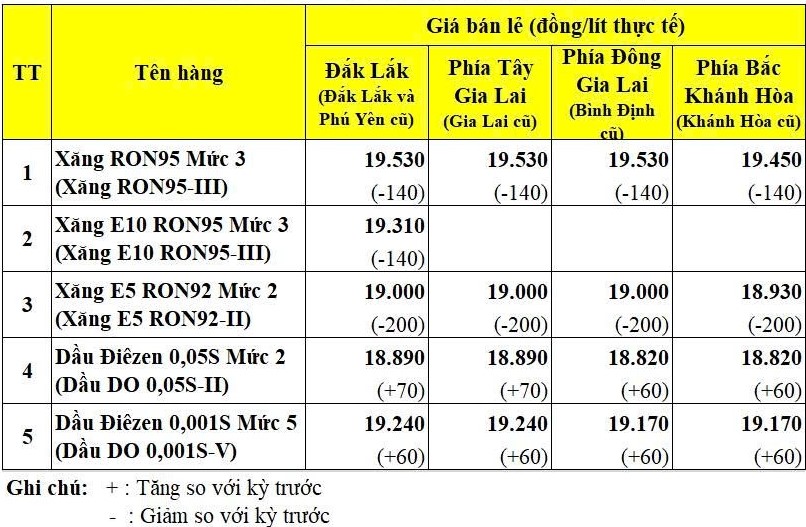 GIÁ BÁN LẺ CÁC MẶT HÀNG XĂNG DẦU ÁP DỤNG TỪ 15 GIỜ 00 PHÚT NGÀY 18/12/2025