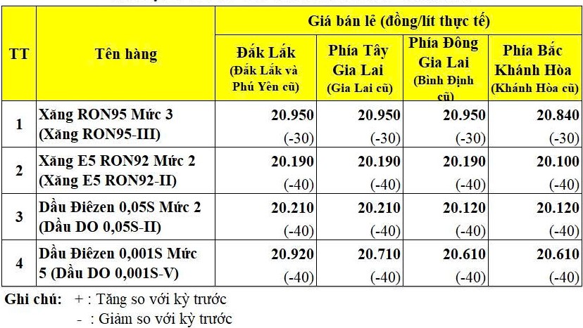 GIÁ BÁN LẺ CÁC MẶT HÀNG XĂNG DẦU