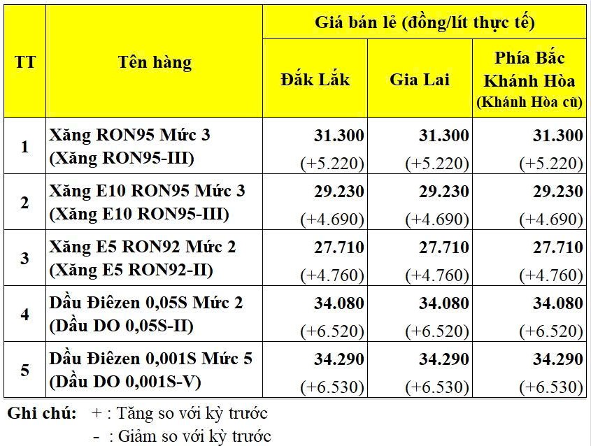 GIÁ BÁN LẺ CÁC MẶT HÀNG XĂNG DẦU ÁP DỤNG TỪ 15 GIỜ 00 PHÚT NGÀY 07/3/2026