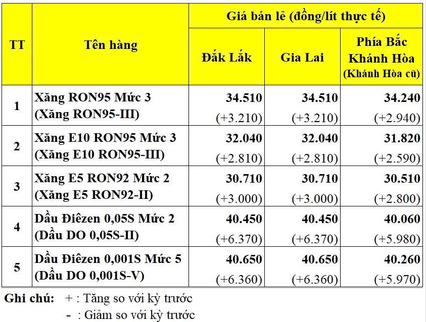 GIÁ BÁN LẺ CÁC MẶT HÀNG XĂNG DẦU ÁP DỤNG TỪ 15 GIỜ 00 PHÚT NGÀY 07/3/2026