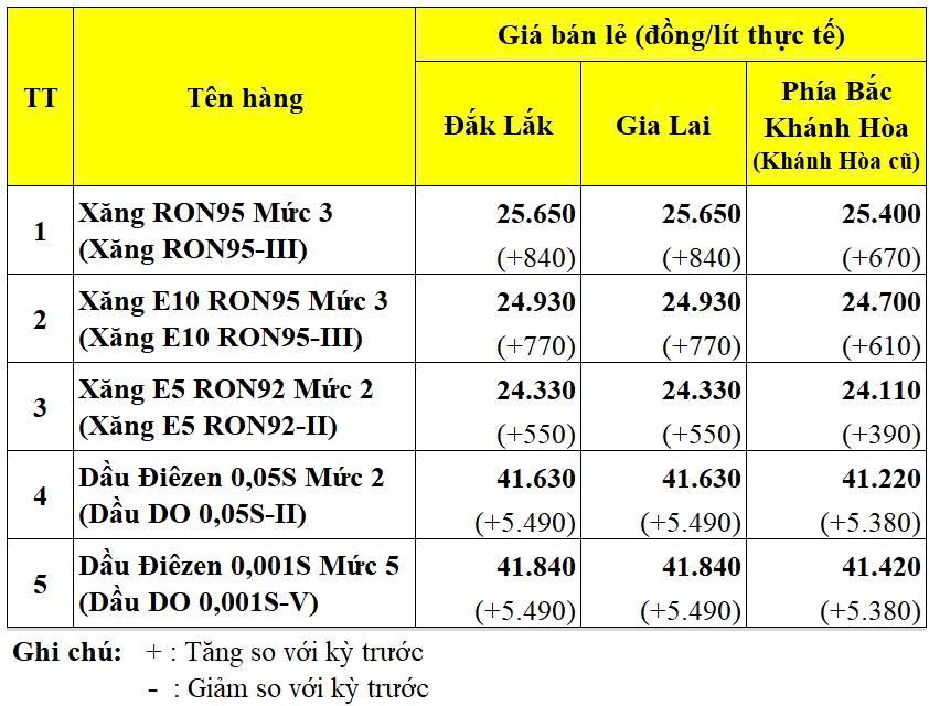 GIÁ BÁN LẺ CÁC MẶT HÀNG XĂNG DẦU ÁP DỤNG TỪ 14 GIỜ 00 PHÚT NGÀY 25/3/2026